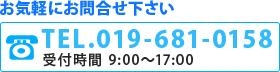 ご相談・お見積もりはすべて無料ですので、お気軽にお問合せください。 メールフォーム受付後、スタッフが確認次第ご連絡いたします。 お急ぎの場合は、TEL.019-681-0158にてお問い合わせください。 (※部分は必須項目になります。)